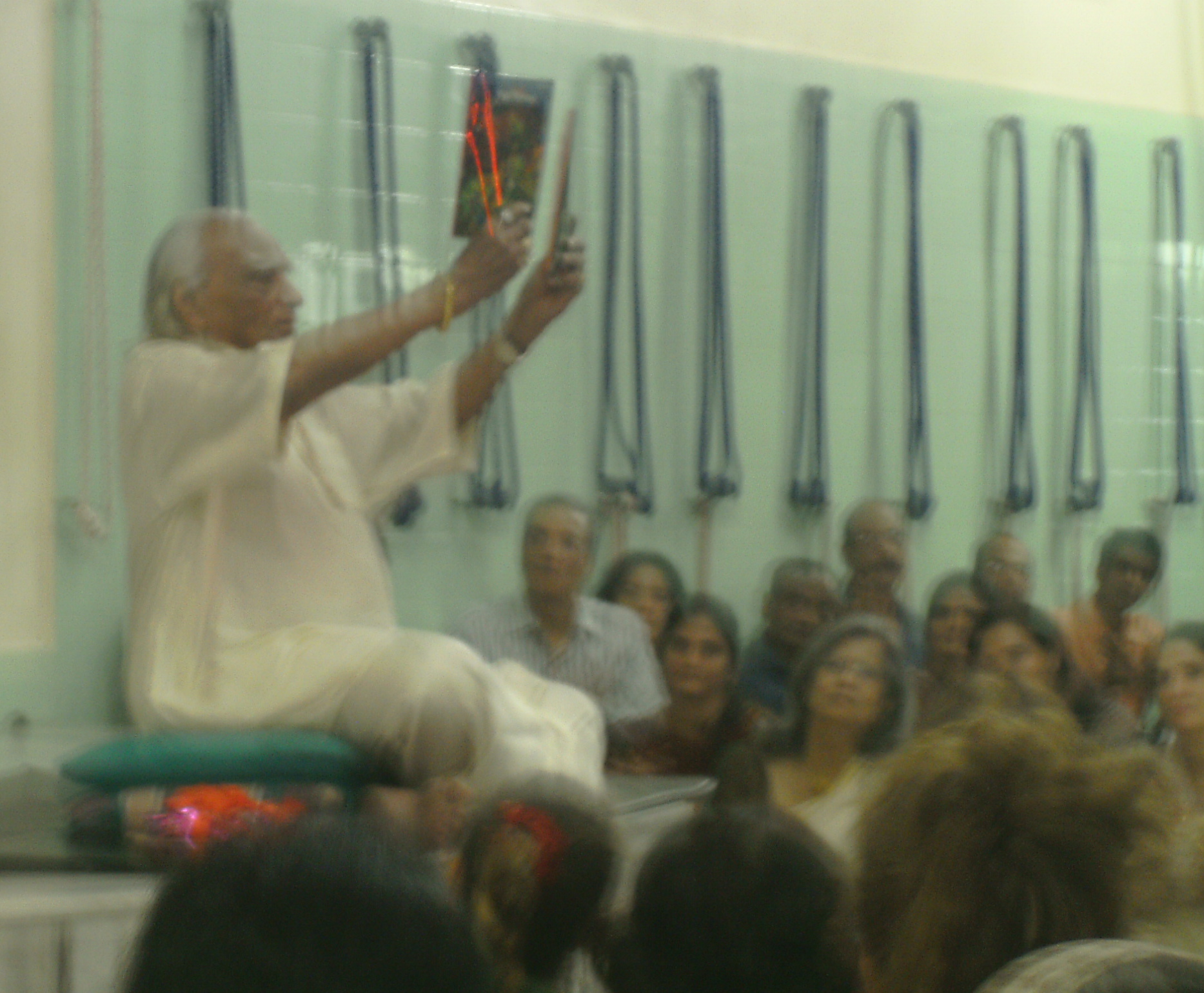 invitados a escuchar hablar a Iyengar, a quienes sus discípulos cariñosamente llaman Guruji.