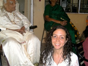 Así que invertí las últimas horas en regalar malas (rosarios hindúes), frutas y chocolates, y en celebrar la hermosa “coincidencia” de que en tres meses había participado en la celebración de cumpleaños de tres de los cuatro gurús que había ido a visitar, gracias a que la fecha original del viaje se había atrasado 90 días. El cumpleaños del maestro de yoga B.K.S. Iyengar fue el último de ese viaje, dos días antes de partir. Me enteré que amaba los chocolates. Apretujada entre cientos de estudiantes que asistieron a agasajarlo, logré entregarle una enorme caja de bombones franceses. Al recibirla, abrió los ojos, me sonrió como una campana, y a mí me brincó el corazón.