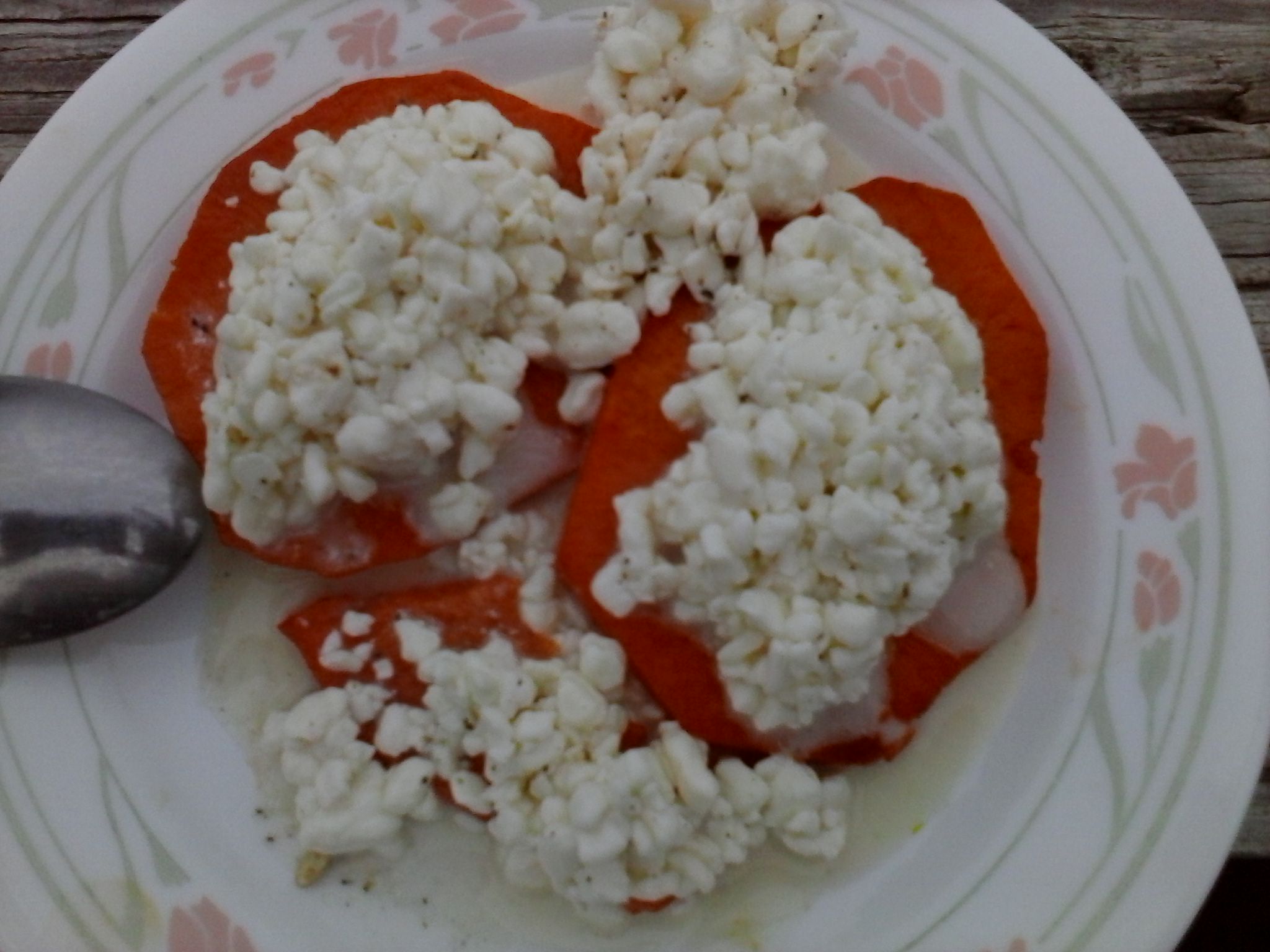 Ingredientes: ½ batata (boniato), ½ taza de queso del país, especias (canela, pimienta negra, sal de mar, sonrisas).
