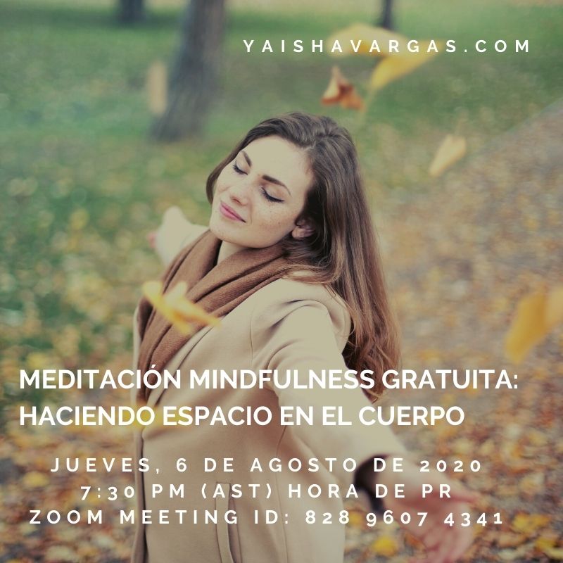 Bienvenid@ a esta meditación mindulness guiada y gratuita. Busca un espacio en el que puedas estar tranquil@ por unos minutos, aprendiendo a visitar y hacer espacio en tu cuerpo. No se necesita experiencia. Bienvenid@s aquell@s participantes nuev@s y aquell@s que quieran profundizar en su práctica o necesiten apoyo. Meditar en grupo fortalece la experiencia de la meditación, aprendemos que no estamos sol@s en nuestras experiencias, nos conectamos con la humanidad compartida y con la bondad. Te puedes conectar a la meditación entrando a Zoom con el ID# 828 9706 4341 o usando este enlace: https://us02web.zoom.us/j/82896074341