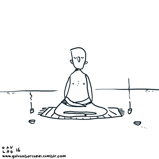 La imagen de arriba representa cómo se siente a veces la meditación en realidad. La mente se agita y se vuelve a aquietar.