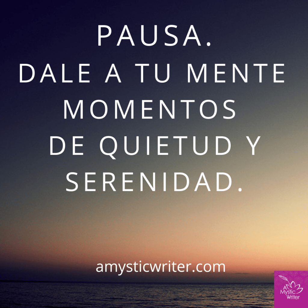 Pausa para darte cuenta de cómo está tu mente. Si brinca de una cosa a otra y sientes ansiedad, llámala de vuelta a tu respiración y a algún punto de tu cuerpo o de los sonidos de ambiente.