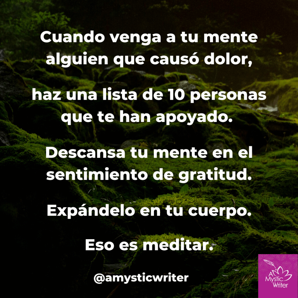 When someone who caused pain comes to mind, make a list of 10 people who have been beneficial or have supported you. Rest your mind on the feeling or sense of gratitude. Expand it in your body. That is meditation.