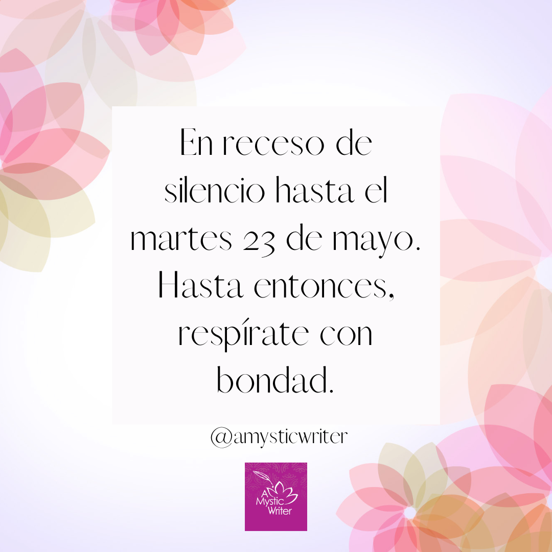 Estoy agradecida por esta oportunidad del silencio profundo y las enseñanzas que son de tanto apoyo. Durante este tiempo, les invito a tratarse con ternura y respirarse con bondad.