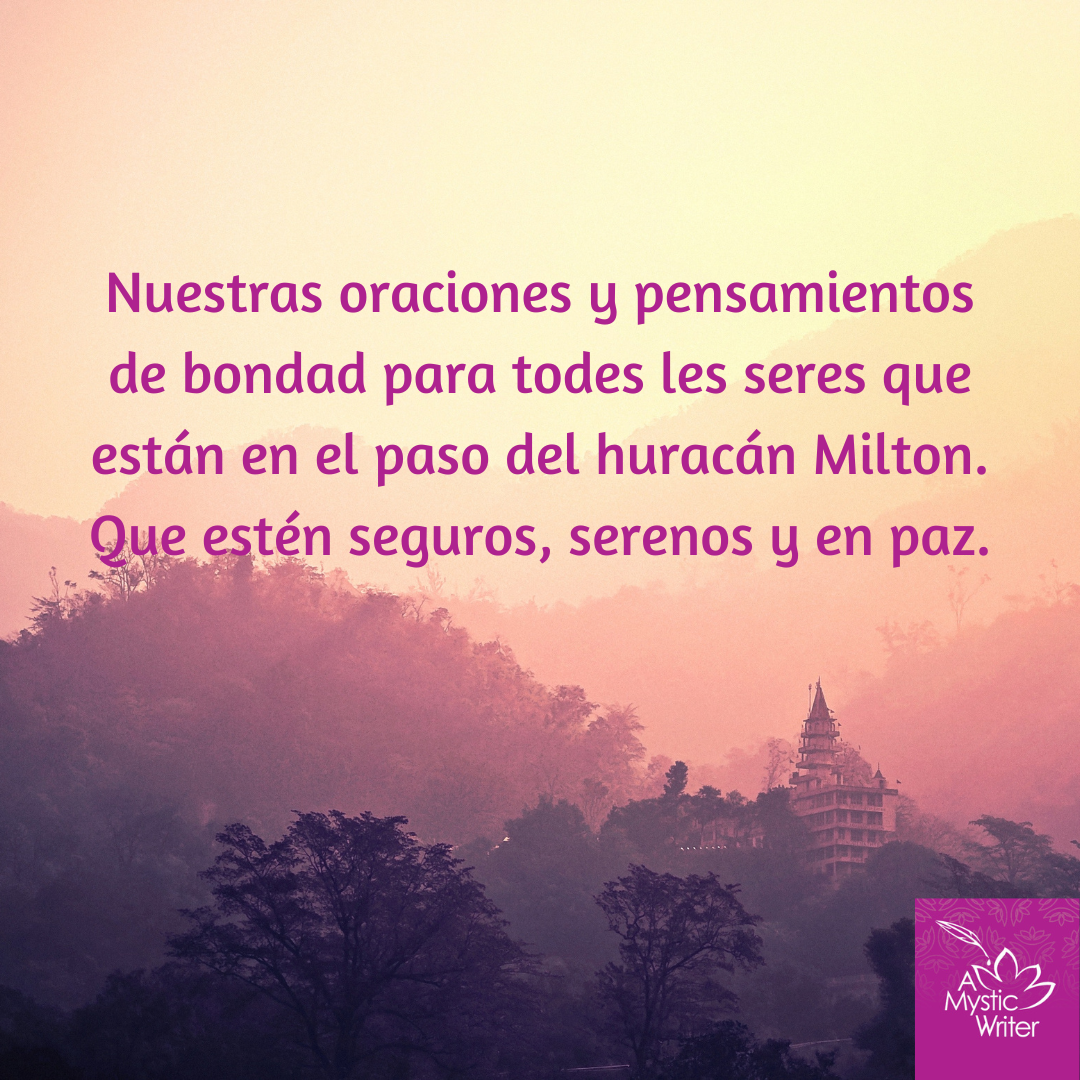 En momentos en que un huracán se acerca al estado de Florida, donde viven nuestros familiares y amigos, las prácticas de bondad pueden ser de mucha ayuda. Podemos repetirlas como si fueran un mantra o un rosario. Podemos preparar un espacio de silencio, poner una mano sobre nuestro corazón y tomar refugio en una Presencia más grande que nosotr@s mism@s. Al practicar bondad, pensamos en nuestros seres queridos y sentimos el amor que tenemos por ellos, dejando de lado por un momento cualquier sentimiento de conflicto o aversión. Expandimos y profundizamos el amor que tenemos por nuestros seres queridos. Les enviamos ese amor con nuestro pensamiento. Les deseamos bienestar, serenidad y seguridad. Visualizando a nuestro ser querido, repetimos cuantas veces necesitemos, haciendo pausas para generar benevolencia:
